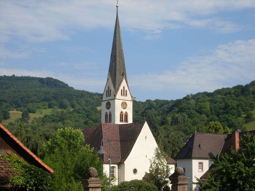Ebringen am Fuße des Schönberges und am Rande der Rheinebene.